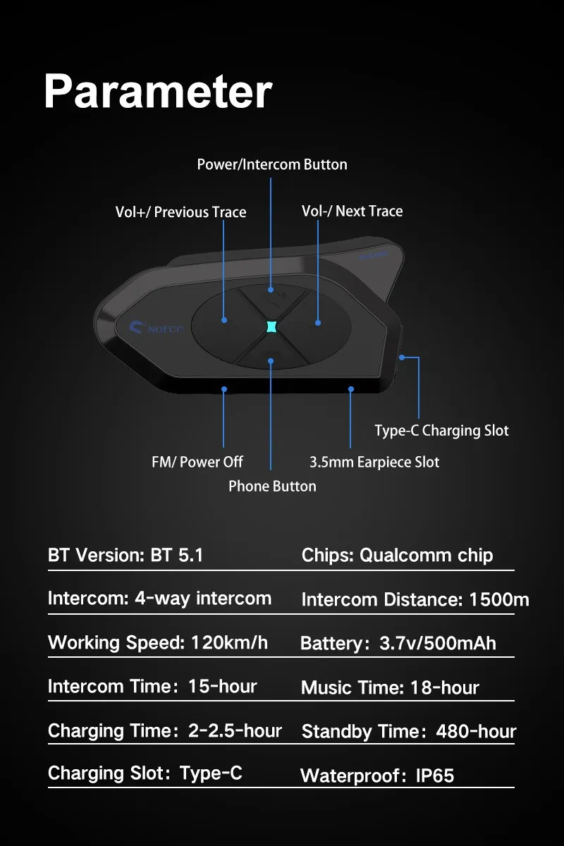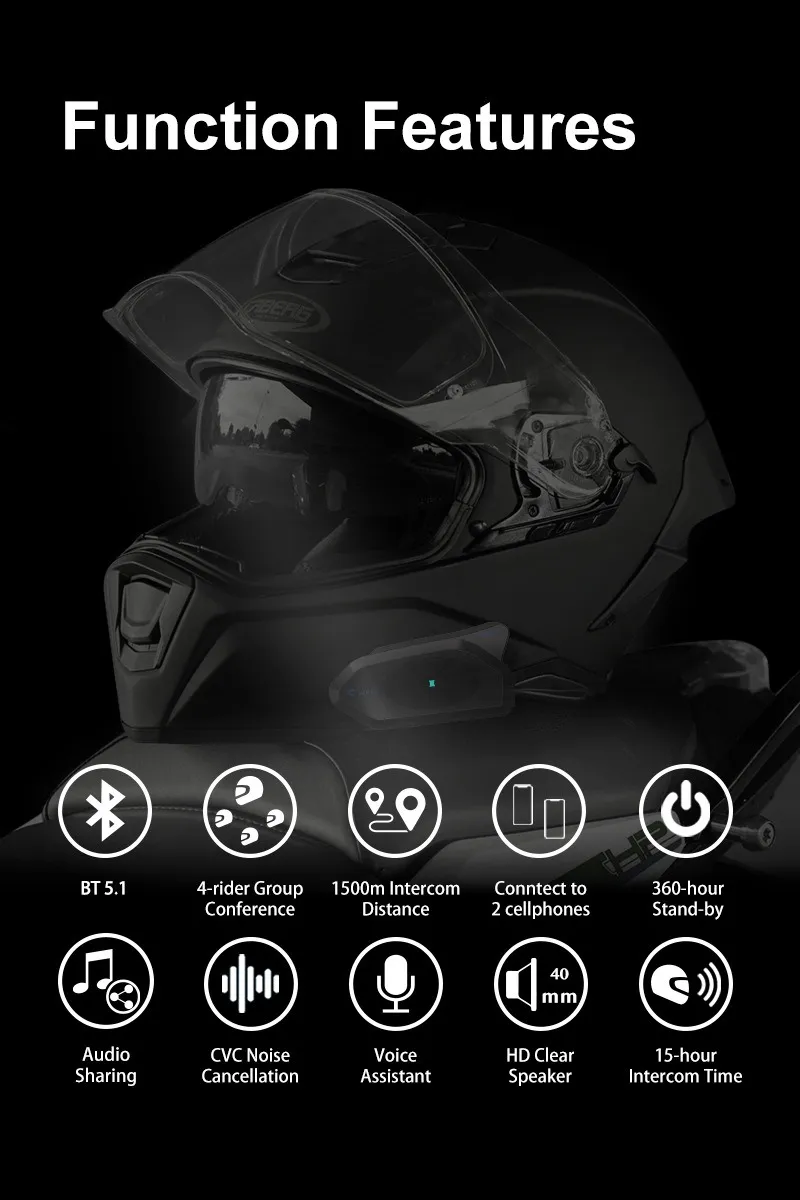 GoCom4 Motorcycle Helmet 4-way Intercom Bluetooth Headsets
